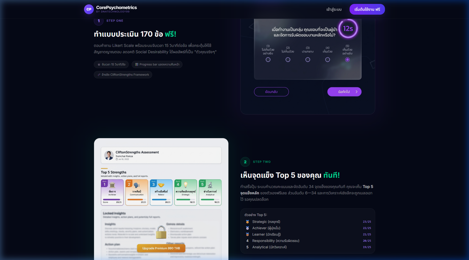 ทำแบบทดสอบจบ รับผลลัพธ์จุดแข็ง 5 อันดับแรกได้ทันทีโดยไม่มีค่าใช้จ่าย